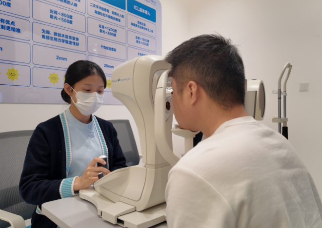 阿龙一直对公职岗位心怀向往,备考期间全力以赴,可每当想到公考体检的视力要求,就忍不住犯愁。他的眼部情况比较特殊,右眼是先天性白内障,视力本就不佳,左眼则存在近视问题,且从未佩戴过眼镜,日常视物模糊不清,连日常看备考资料还都受到影响。在了解到公职人员体检对视力有明确标准后,阿龙下定决心解决眼部问题。“如果因为视力不达标错失心仪的岗位,真的太可惜了。”他表示,原本只打算针对先天性白内障进行手术,没想到在术前检查时,医生他告知了左眼近视的问题,建议他趁这次机会一并解决,摆脱视力困扰。
